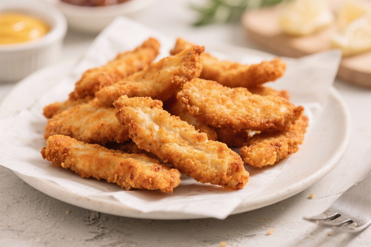 - Buttermilk brine: Marinate strips in buttermilk with a little salt and hot sauce for 1–4 hours. Pat dry lightly before breading for extra tenderness.