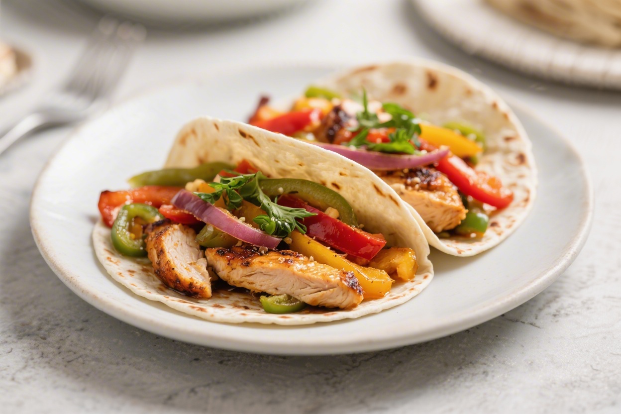 - Balanced meal: Protein, colorful veggies, and whole grains if you use whole wheat tortillas.